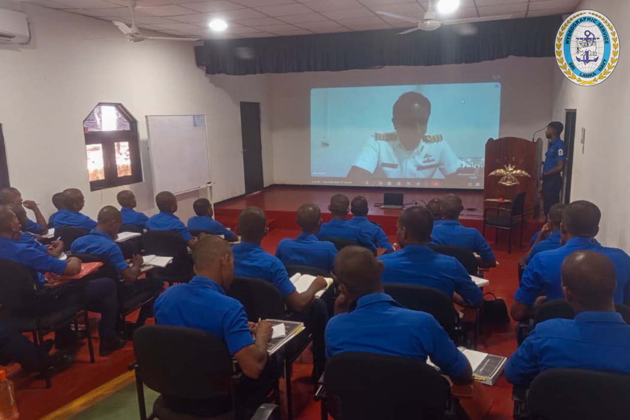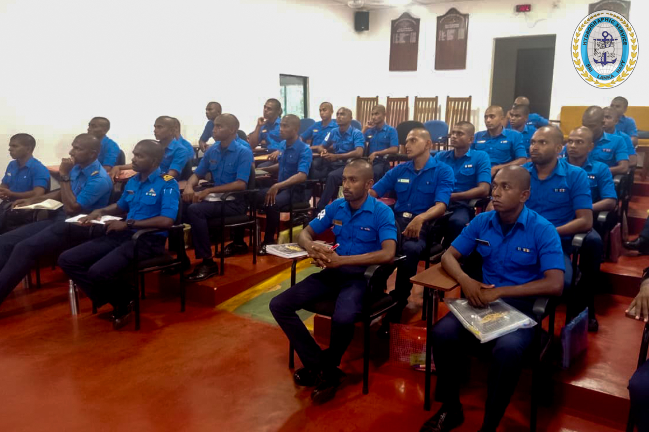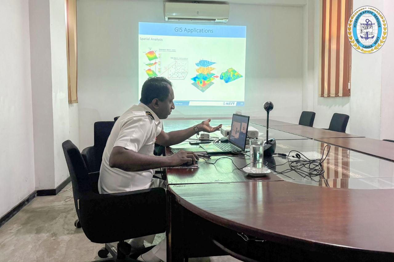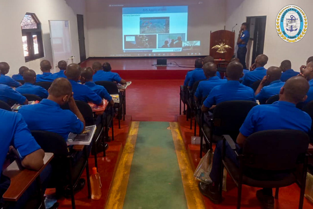 The session was delivered by Commander(H) HMNM Herath,psc of the Sri Lanka Navy Hydrographic Service (SLNHS), who conducted a comprehensive theoretical presentation on GIS, highlighting its significance in modern naval operations and informed decision-making.